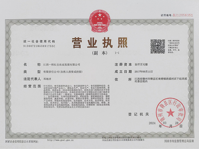 通過一系列扎實有效的工作措施,我們企業(江西一粒紅塵農業發展有限公司)在農產品質量安全方面取得了顯著成效。未來,我們將繼